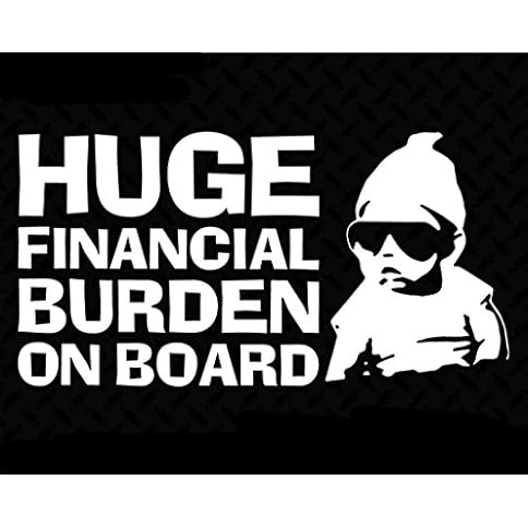 Huge Financial Burden on Board Funny Baby Carlos JDM Decal Vinyl Sticker|Cars Trucks Vans Walls Laptop| White |6.5 x 3.5 in|CCI1440