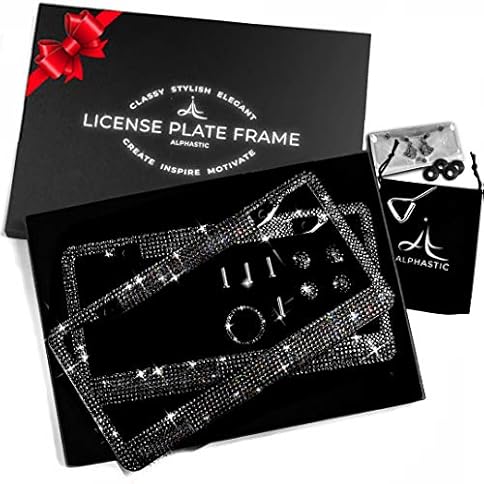 Glass Diamond Car License Plate Frame – 2 Pack Black Handmade | Sparkly Bling Rhinestone Stainless Steel Metal Frames For Women & Men Cars Plates. AA SS16 Crystal (Black Glass Diamond Rhinestone)