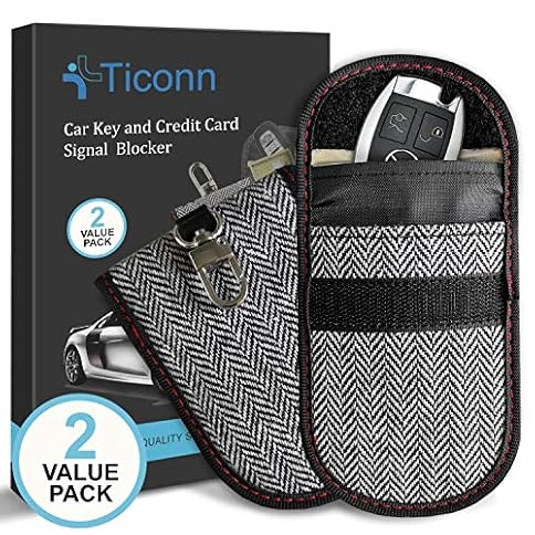 Upgraded Faraday Bag for Key Fob (2 Pack), TICONN Premium Faraday Cage Protector – Car RFID Signal Blocking, Anti-Theft Pouch, Anti-Hacking Case Blocker (Harris Tweed)