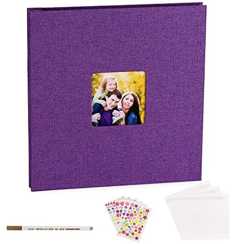VACNITE Photo Album Self Adhesive,Scrapbook Album for Wedding/Family, Linen Cover DIY Gift Magnetic Photo Book with 40 Sticky Pages Holds 8X10, 6X8, 5X7, 4X6