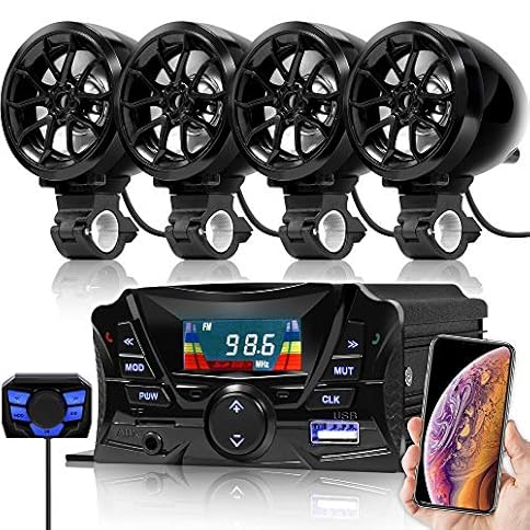 GoHawk TS3-Q 4 Channel Amplifier 3″ Motorcycle Waterproof Bluetooth Speakers MP3 Music Sound Audio Stereo Amp System for 7/8-1 in. Handlebar ATV 4 Wheeler w/ AUX, USB, micro SD, FM Radio