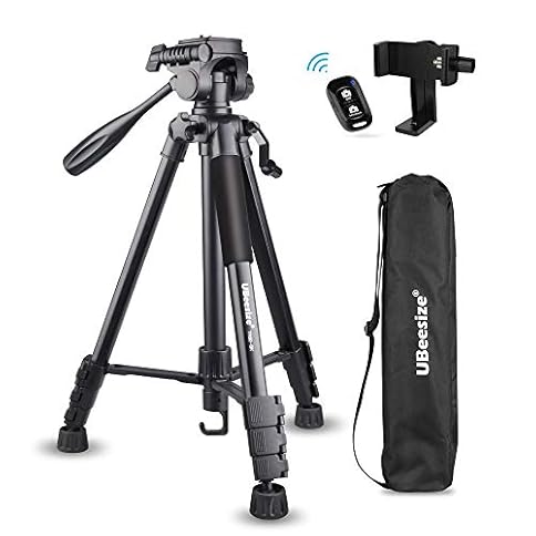 UBeesize 60-inch Camera Tripod, 5kg/11lb Load TR60 Load Portable Lightweight Aluminum Travel Tripod with Carry Bag & Bluetooth Remote, for DSLR SLR Cameras Compatible with iPhone & Android Phone