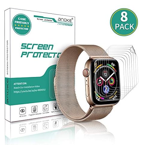 [8 Pack] AnoKe for Apple Watch iWatch 44mm/42mm Screen Protector (Series 4 Series 3/2/1),Liquid Skin [Max Coverage] Curved Edge Case Band Friendly Lifetime Replacement Warranty 44mm