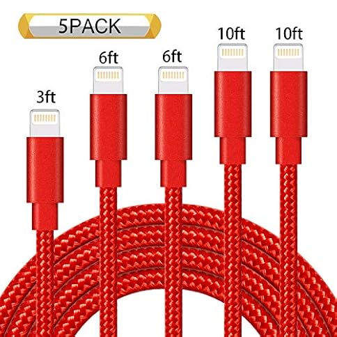 iPhone Charger,Neatlo MFi Certified Lightning Cable 5Pack[3/6/6/10/10FT] Extra Long Nylon Braided USB Charging & Syncing Cord Compatible iPhone Xs/Max/XR/X/8/8Plus/7/7Plus/6S/6S Plus/SE/iPad-Red