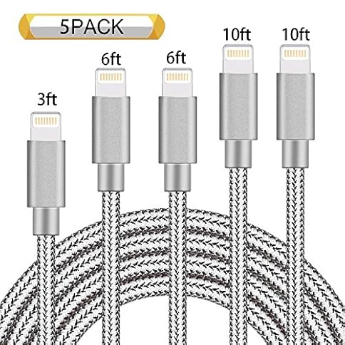 iPhone Charger,Neatlo MFi Certified Lightning Cable 5Pack[3/6/6/10/10FT] Extra Long Nylon Braided USB Charging & Syncing Cord Compatible iPhone Xs/Max/XR/X/8/8Plus/7/7Plus/6S/6S Plus/SE/iPad-Grey