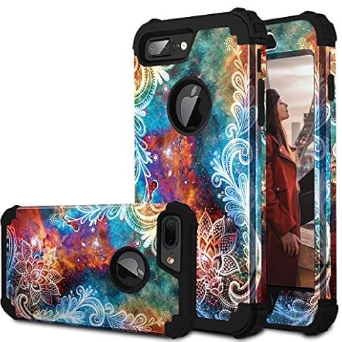 iPhone 8 Plus Case, iPhone 7 Plus Case, Fingic Floral Heavy Duty Protection Hybrid Hard PC & Soft Silicone Rugged Bumper Anti Slip Full-Body Shockproof Protective Case for iPhone 7 Plus/8 Plus,Mandala
