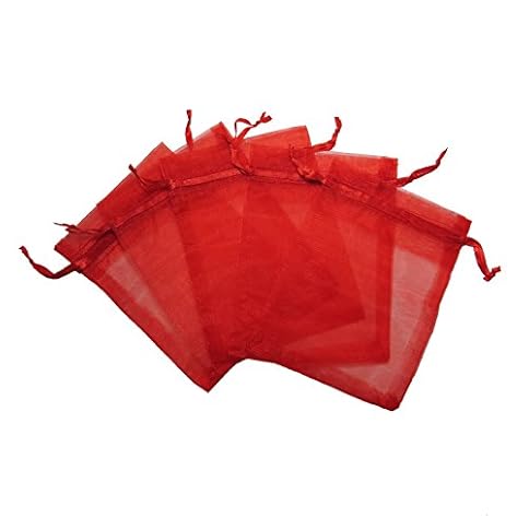 RakrisaSupplies 100Pcs Red Organza Bags 3×4″ w/Drawstring | Accurate Sizing, Reinforced Stitching & Crease Free Sheer Organza Pouches | OB34-06