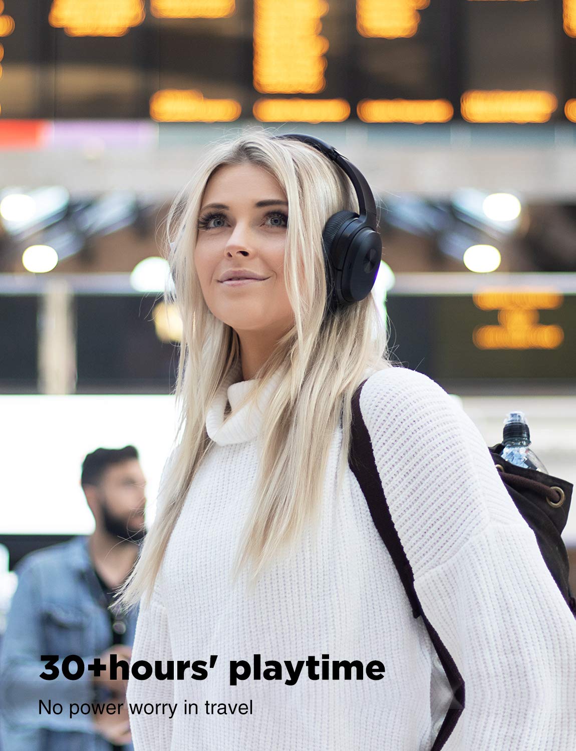 30 Hours Playtime Per Charge at Bluetooth Mode. A built-in 800mAh battery won’t allow your headphones power off, you can enjoy your world without noise for 30 hours’ long time. Don’t need to worry the power shortage problem on the long travel. 18-month warranty and quick response & friendly customer service. Note: The exclusive authorized seller is COWIN.