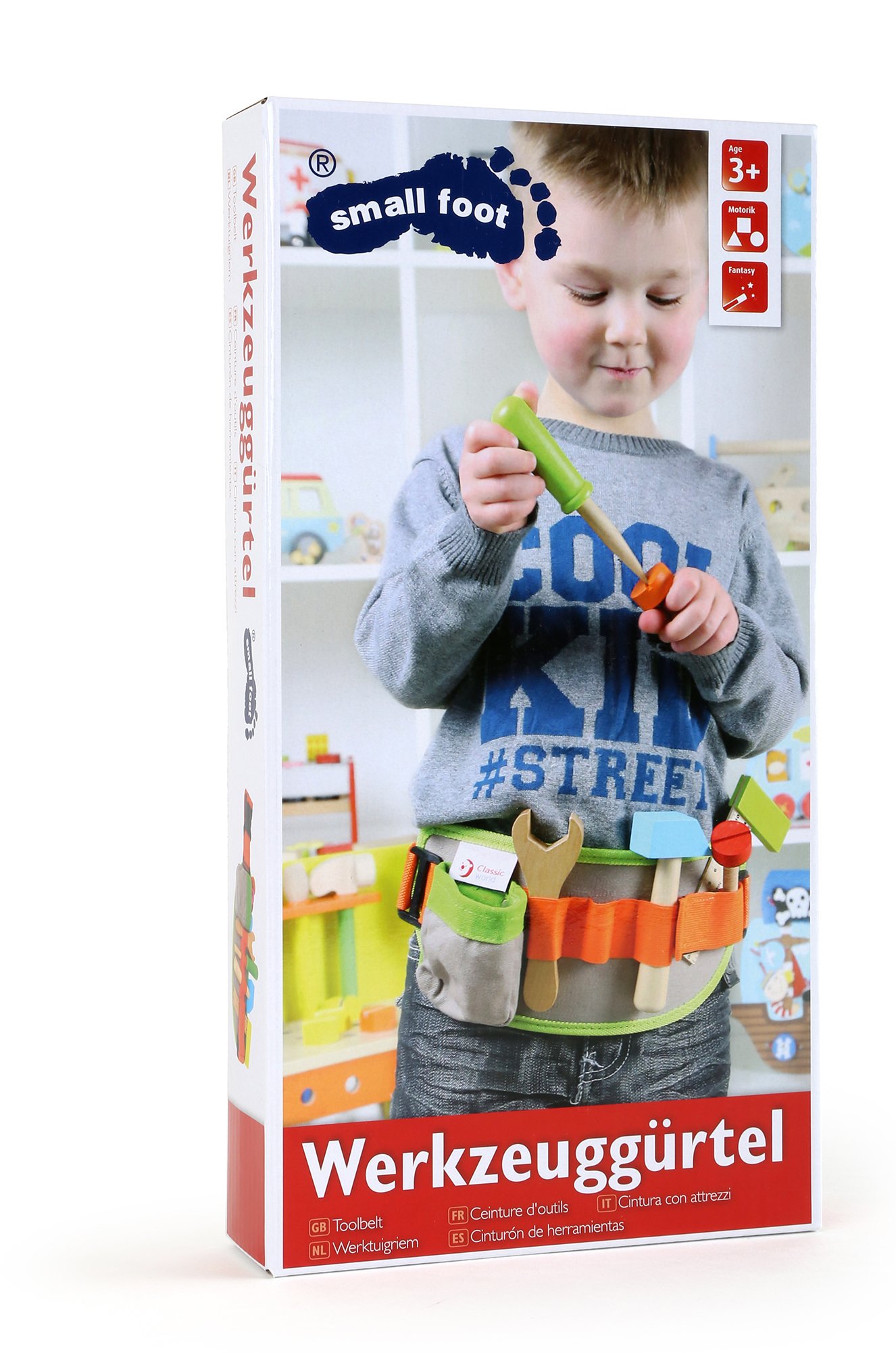 With this colourful tool belt little craftsmen are highest ready;Together with ruler, screwdriver, hammer, jaw spanner, three screws and five nuts made from solid wooden with colourful lacquering;The clicking buckles of the robust nylon belt may also be opened and closed briefly;Tool Belt;For kids from 3 years