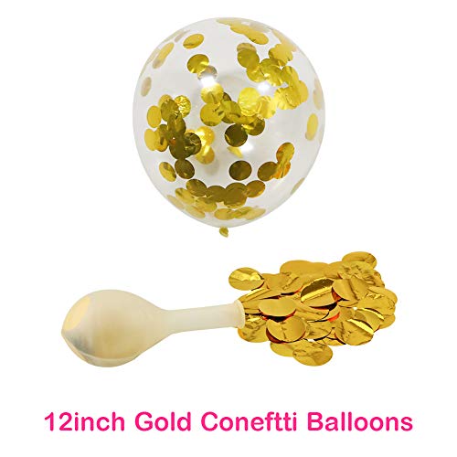 [WHAT YOU WILL GET]- 10pcs* 12″ gold confetti balloons, 40pcs 12″ latex balloons(Transparent/White/Pink/Hot pink, each color 10pcs), 20pcs * 5″ latex Balloon( White/Pink, each color 10pcs), 12pcs * artificial leaves, 1pc * 16ft balloon strip, 1pc * Balloon knotter, and some pieces glue dots.